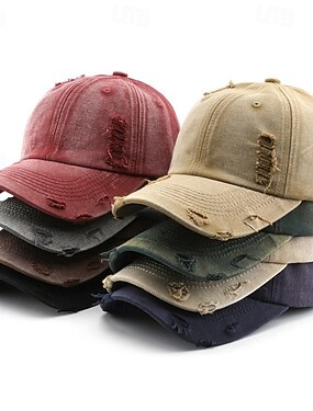 Unisexo Gorra de béisbol Caqui Claro Negro Algodón rasgado Punk Moda Casual Casual Diario Exterior Color sólido Ombre Sol Protección Solar