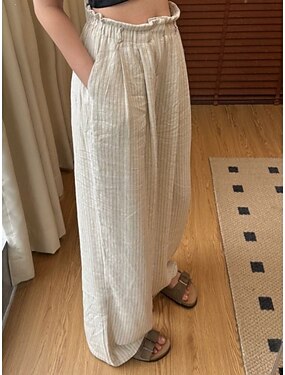 Mujer Lino de algodón sintético Pantalones de Deporte Perneras anchas Chinos Vacaciones Moda Ropa de calle Longitud total Alta cintura A Rayas Bolsillo Cintura elástica Estampado Confortable Suave