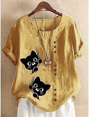 Mujer Blusa Botones Estampado Graphic Animal Vintage Tropical Elegante Sin Mangas Manga Corta Tops largos Festivos Amarillo Azul Marino Verano Primavera Otoño