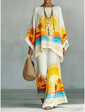 Mujer Talla EU / US2 Pieces SetsConjuntos a juego Media Manga Campana Escote en Pico Estampado Estampado Noche Casual Diario Azul Piscina Rojo Morado Verano Holgado