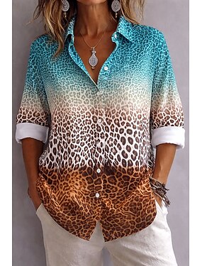 Mujer Camisa Botones Estampado Ombre Graphic Leopardo Elegante Vintage Tropical Manga Larga Cuello Camisero Tops regulares Diario Trabajo Azul Piscina Naranja Verde Trébol Verano Primavera Otoño