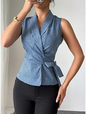 Mujer Blusa Plano Activo Casual Sin Mangas Escote en Pico Tops regulares Diario Festivos Noche Negro Blanco Rosa Fucsia Rosa Brillante Verano Primavera