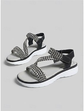 Sandalias negras de mujer con tira trenzada y cierre ajustable. &Sandalias deportivas con tira, calzado informal ligero con suela acolchada para caminar en verano y para viajar. &ropa de uso diario