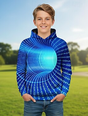 Chico 3D Graphic Geométrico de impresión en 3D Sudadera Manga Larga Primavera Otoño Moda Ropa de calle Niños 4-12 años Con Capucha Exterior Casual Diario Ajuste regular