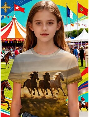 100% Algodón Niños Chica Negro Graphic Águila 250 aniversario Bandera estadounidense para niños Camiseta Cuello Barco Manga Corta Diario Ropa de calle Activo Vacaciones Casual Estampado Verano