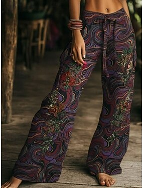 Mujer Perneras anchas Pantalones de verano Pantalones Vacaciones Ropa de calle Casual Longitud total Media cintura Graphic Geométrico Correa Bolsillo Estampado Cómodo Rígido Diario Exterior Vacaciones