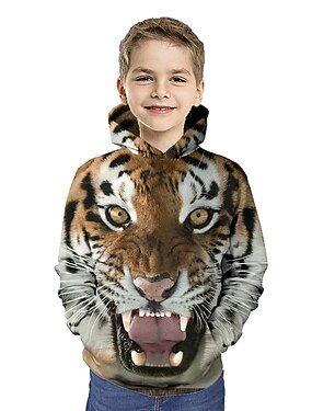 Chico 3D Graphic Animal Tigre Camiseta Manga Larga Primavera Otoño Moda Básico Niños 4-12 años Cuello Barco Exterior Casual Diario Ajuste regular