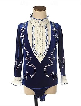 Vestido de patinaje artístico Chica Patinaje Sobre Hielo Vestidos Azul marinero Retazos Espalda Abierta Elástico Entrenamiento Competición Ropa de Patinaje Clásico Cristal / Strass Manga Larga