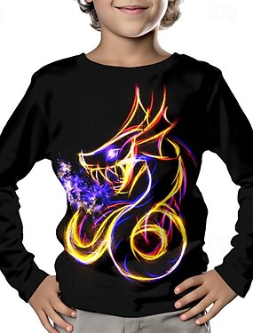Chico 3D Dragón Camiseta Camisas Manga Larga Impresión 3D Primavera Otoño Deportes Moda Ropa de calle Niños 3-12 años Cuello Barco Exterior Casual Diario Ajuste regular