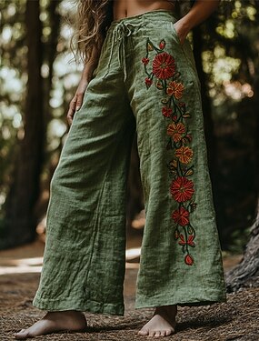 Mujer Perneras anchas Pantalones Pantalones palazzo Moda Boho Longitud total Alta cintura Flor Correa Cintura elástica Estampado Transpirabilidad Cómodo Calle Ropa Cotidiana Noche Verde Trébol