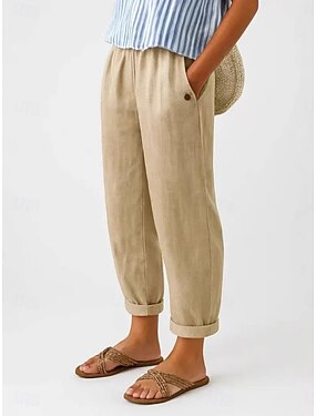 Mujer Pantalones Capri Pantalones de lino Pantalones Pantalones casuales Vacaciones Moda Básico Medio corto Media cintura Plano Bolsillo Pierna recta Ligero Cómodo Transpirable Rígido Diario Calle