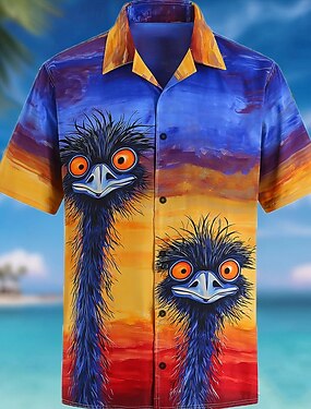Hombre Pájaro Avestruces Bloqueo de color Camisa Cubana camisa hawaiana Camisas tropicales Manga Corta Hawaiano Gracioso Ropa de calle Festivos vacaciones en la playa Verano Primavera Camisa con