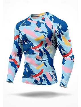 Hombre Gradiente de Color Camiseta Compresión Camiseta para correr Primavera Otoño Impresión 3D Manga Larga Secado rápido Compresión Power Flex Dispersor de humedad Transpirable Entrenamiento de