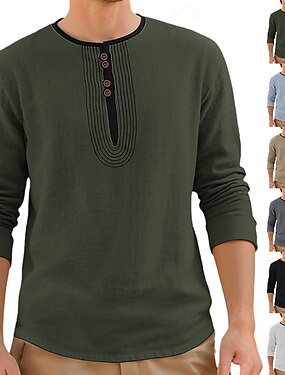 Hombre Camiseta Henley Shirt Camiseta de lino y algodón Manga Larga Henley Verano Primavera Bloque de color Vintage Ropa de calle Elegante Retazos Bloque de Color Botones Casual Diario Exterior