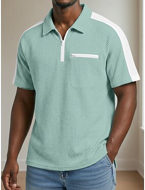 Hombre Camisetas polo con diseño de gofre polo con cremallera Casual Aptitud física Diseño Cremallera de un cuarto Manga Corta Moda Músculo Color sólido Cremallera Bolsillo con cremallera Primavera