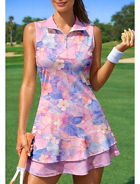Mujer Flores Vestido deportivo Vestido polo de tenis Sin Mangas Cremallera Cremallera de un cuarto Elástico Reductor del Sudor Transpirable Voleibol Tenis Golf Cuello Cuello Vuelto Vestidos Rosa Ropa