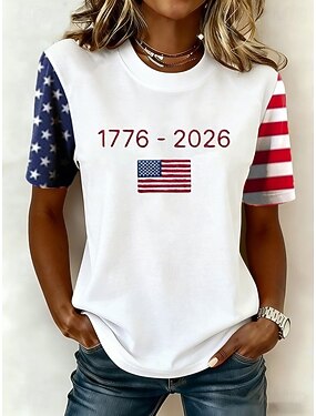 Día de la Independencia Camiseta Patriótica para Mujeres Camiseta Impresión Gráfica Letra Bandera Americana Elegante Clásico Casual de Manga Corta Cuello Redondo Regular Diaria Azul Negro Rojo Verano