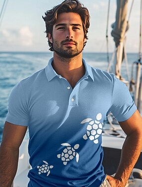 Derby de Kentucky Hombre Ombre Tortuga Polo Manga Corta Camisas de polo Camisas con cuello Casual Complejo Ropa de vacaciones Impresión 3D Verano Primavera Otoño Blanco Azul Piscina Azul Oscuro