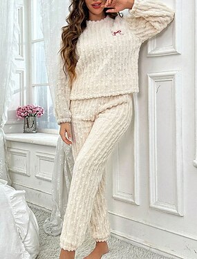Mujer Ropa de salón Conjunto pijama Moda Casual Confort Mariposa Pijamas de satén sedoso Cintura elástica Camisa Pantalón Diario Hogar Manga Larga Cuello Camisero Blanco Beige Otoño Ajuste regular