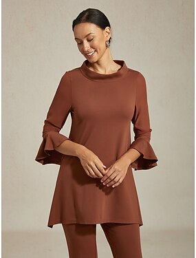 Blusa de mujer en color marrón café de gasa modal, corte ajustado, mangas transparentes, elegante, informal, para uso diario, ligera, transpirable, para oficina, cenas, citas, primavera y otoño.