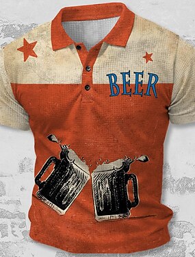 Hombre Cerveza Camisetas polo Manga Corta Camisas de polo Cuello Vuelto Ropa deportiva Abstracto Casual Diario Playa Calle Festivos 3D Estampado Primavera verano Rojo