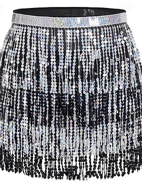 Falda de lentejuelas, faldas envolventes con flecos, falda brillante para danza del vientre, bufanda a la cadera, falda con borlas, disfraz rave para fiesta para mujeres y niñas