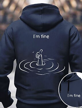 Sudadera con capucha gráfica para hombres "Estoy bien" sarcástica ahogándose con pulgar hacia arriba humor de estilo de vida de manga larga