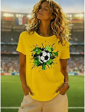 Mujer Camiseta Camiseta superior Estampado Graphic Fútbol Americano Elegante Clásico Casual Manga Corta Cuello Barco Tops regulares Diario Deportes Noche Negro Blanco Amarillo Rosa Verde Ejército