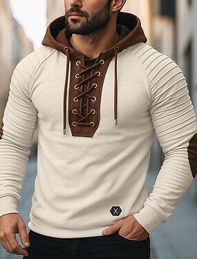 Hombre Camiseta Camiseta superior Camisa de manga larga Manga Larga Con Capucha Otoño Primavera & Otoño Bloque de color delgado plisado Moda Design Básico Acordonado Retazos Vacaciones Calle Casual