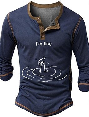 Camisa Henley de manga larga para hombres con gráfico divertido de 'Estoy bien' ahogándose. Humor irónico de estilo de vida.
