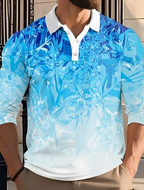 Hombre Graphic Camisetas polo con diseño de gofre Manga Larga Camisas de polo Camisas con cuello Casual Exterior Ropa Deportiva Ropa de calle Botones Azul Piscina Verde Trébol Gris