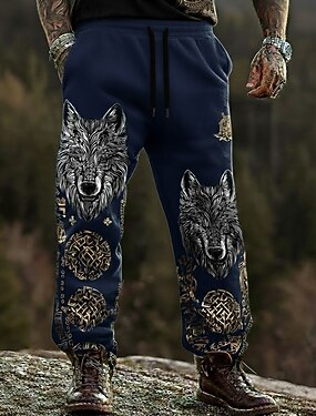 Hombre Lobo Vikingo Arte celta Pantalones Pantalones casuales Media cintura Cintura elástica con cordón. retro de la vendimia Exterior Acampada y Senderismo Caza Pantalones rectos Primavera Otoño