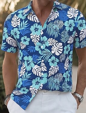 Hombre Estampado Floral Flores tropicales camisa hawaiana Abotonar la camisa Manga Corta Hawaiano Vacaciones Festivos Ropa de playa Verano Primavera Cuello Vuelto Impresión 3D Camisa tipo lino Azul