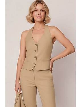 Mujer Chaleco Oficina Formal Invitado a la boda Tejido elástico Elegante Sin Mangas Cuello halter Botonadura Simple