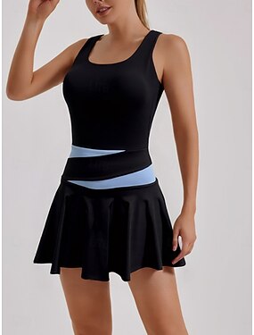 Mujer Retazos Vestido de tenis con pantalones cortos Vestido deportivo Sin Mangas Bolsillo Elástico Reductor del Sudor Transpirable Tenis Golf Corriendo Camiseta con cuello redondo Vestidos Negro Azul