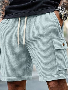 Hombre Pantalón corto Pantalones cortos casuales Pantalones cortos de pana Bolsillo Cintura elástica Con Texturas Plano Comodidad Transpirable Longitud de la rodilla Casual Exterior Playa Vacaciones