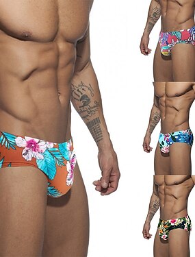 Hombre Tanga de baño Ropa Interior Calzoncillos de Natación Flores Eslático Transpirable Prendas de abajo Surf Bikini Buceo Verano