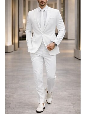 De los hombres Smoking Trajes de fiesta Casual Boda Blanco Traje Solapa de Pico Formal Color sólido Ajustado Juego de 2 piezas Recto 3 botones