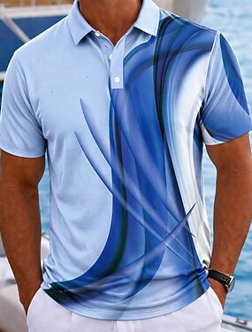 Hombre Camisetas polo Camiseta de golf Manga Corta Camisas de polo Camisas con cuello Para trabajo Ropa formal Ropa de festival Botones Impresión 3D Primavera verano Azul Piscina