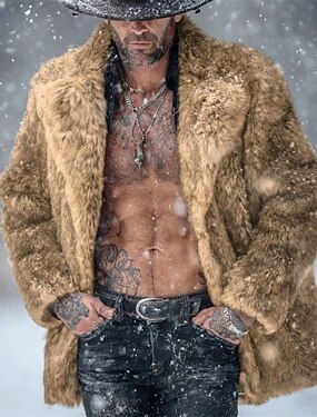 Hombre Chaqueta de Invierno Abrigo de piel sintética Vacaciones Diario Mantiene abrigado Vellón Otoño Invierno Plano Moda Ropa de calle Diseño Largo Negro Blanco Amarillo Color Camello Marrón