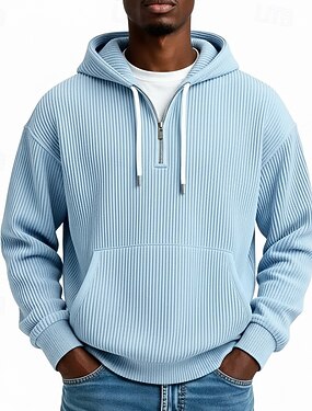 Hombre Sudadera Pana Pull-over Sudadera con capucha y cremallera de un cuarto Albaricoque Blanco Morado Verde Trébol Gris Claro Con Capucha Plano Bolsillo canguro Con Texturas Casual Diario Deporte