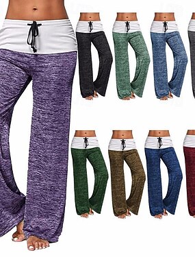 Mujer Perneras anchas Chinos Pantalones Vacaciones Ropa de calle Casual Longitud total Alta cintura Color sólido Retazos Cintura elástica Confortable Transpirabilidad Rígido Diario Hogar Exterior