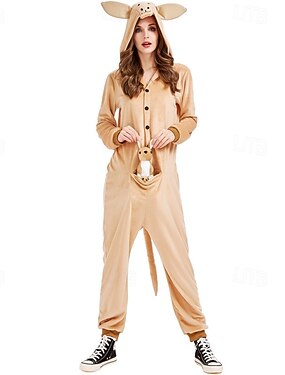 Pijamas Kigurumi Disfraz de lujo Disfraz de mono Animal Canguro Cálido Estilo lindo Con Capucha Vellón Adulto Hombre Mujer Víspera de Todos los Santos Carnaval Fiesta Rendimiento Ropa de casa