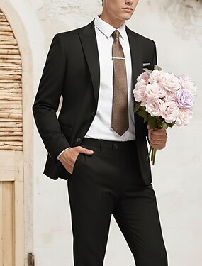 De los hombres Trajes de negocios Casual Fiesta Negro Burdeos Primavera, Otoño, Invierno, Verano Traje Solapa Redonda Formal Color sólido Estándar Juego de 2 piezas Recto 1 botón