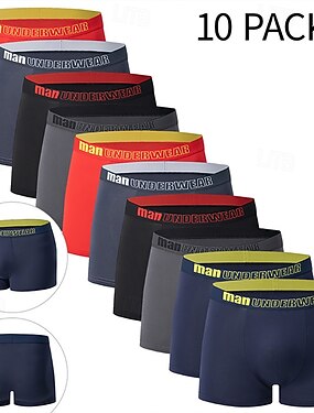 Hombre Paquete de 10 Bragas básicas Boxer Slip Cintura elástica Terileno Transpirabilidad Cómodo Letras Multicolor