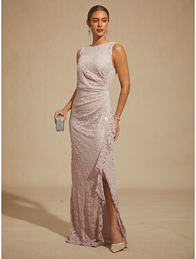 Mujer Vestido maxi Vestido tubo Elegante Fiesta de Noche Invitado a la boda Lentejuelas Encaje Volante Ajuste regular Color sólido Sin Mangas Escote Barco Rosa rubor