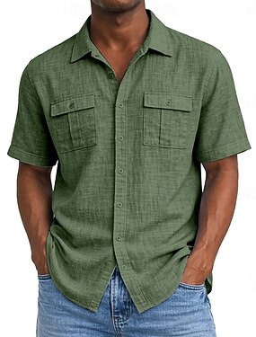 Hombre Camisa Camisa de lino Camisa de verano Ropa de playa Abotonar la camisa Color sólido Vacaciones Maldición Negro Rosa Verde Trébol Azul claro Manga Corta Cuello Verano Primavera verano Ropa