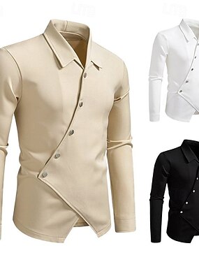 Hombre Camisa Camisa casual Camisa de cuello Abotonar la camisa Camisa de diseñador Negro Blanco Color Caquí Manga Larga Plano Cuello Vuelto Vacaciones Casual Dobladillo irregular Ropa Moda Moderno