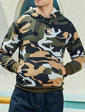 Hombre Sudadera Verde Ejército Caqui camuflaje verde Con Capucha camuflaje Correa Bolsillo delantero Diario Festivos Noche Poliéster Ropa de calle Casual Otoño Invierno Ropa Sudaderas con capucha