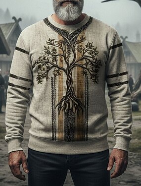 Hombre Sudadera Verde Trébol Caqui Cuello Barco Árbol de la vida Yggdrasil Nudo celta Estampado Casual Diario Ropa de calle Vintage Vikingo Otoño Invierno Ropa Sudaderas con capucha Sudaderas Manga
